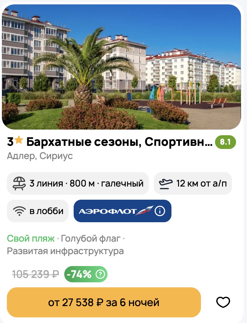 6 ночей в Сочи за 13700 руб — вылет 10.10 из Москвы
