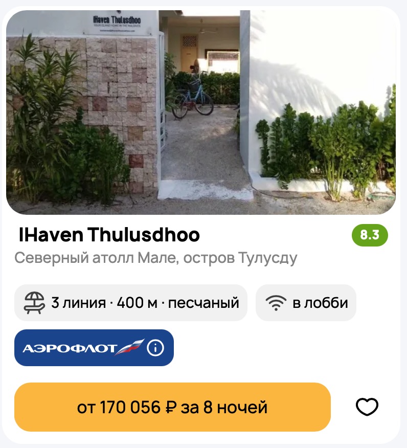 - прямые перелета Москва — Мале — Москва с багажом (Аэрофлот)