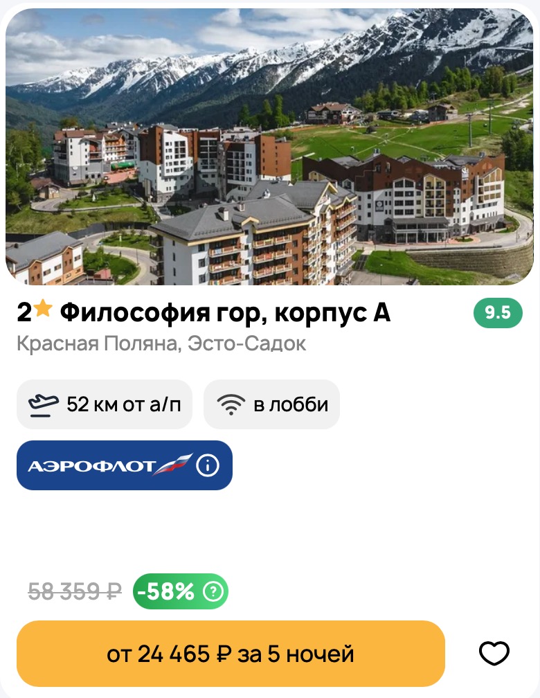 Недорогой тур в Красную Поляну! Пакетный тур с проживанием 5 ночей. Также включены перелеты в обе стороны с багажом. Платный трансфер. Цена тура всего 12000 руб с человека. Туроператор Библио Глобус.
