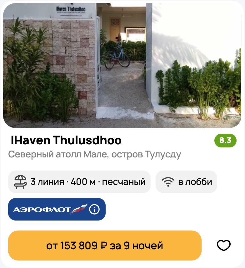 - прямые перелета Москва — Мале — Москва с багажом (Аэрофлот)